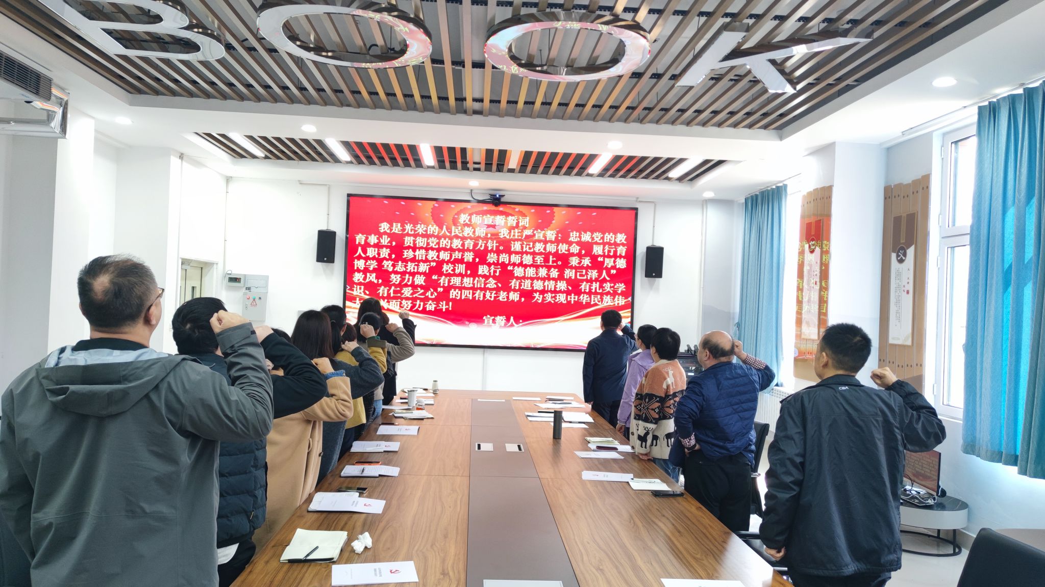 2026年4月1日,图书馆组织全体馆员在职工书屋开展师德师风宣誓主题活动,号召全体教师时刻以职业道德规范为准则,筑牢思想防线,坚守教育初心,弘扬践行教育家精神,切实肩负起为党育人、为国育才的光荣使命。