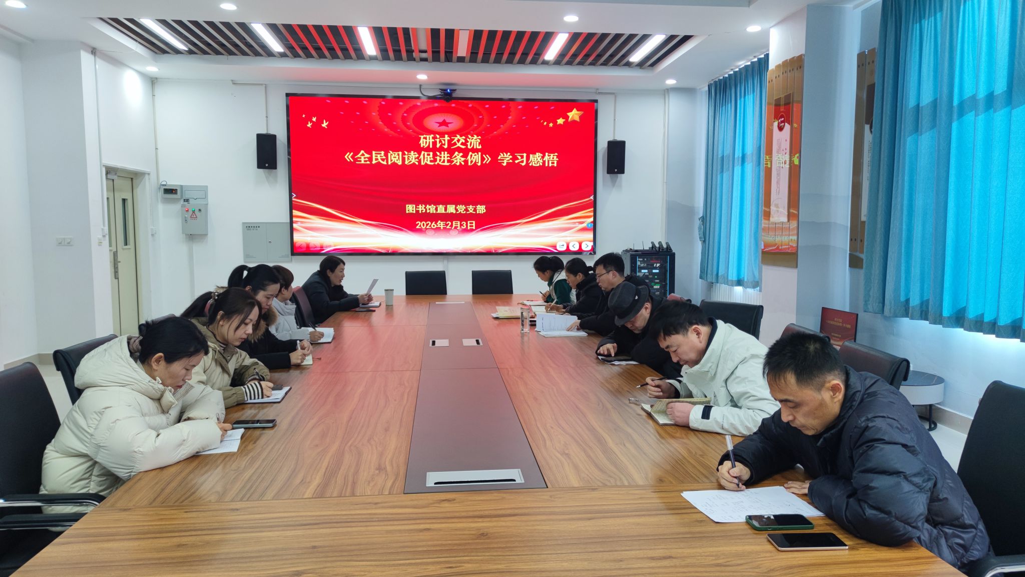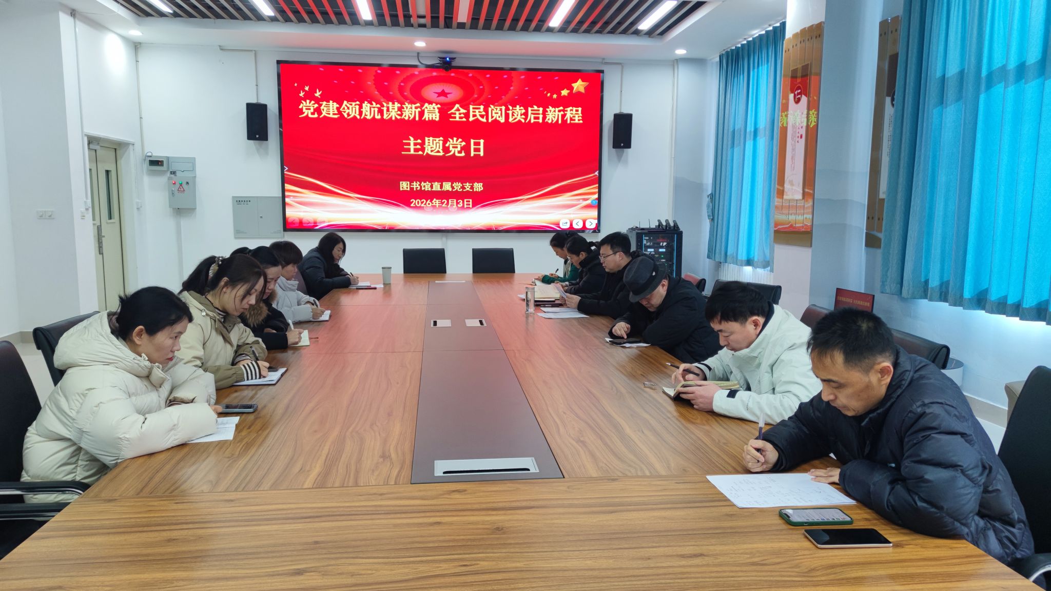 为深入贯彻落实党的二十届四中全会精神及国家全民阅读战略部署,切实发挥党建引领作用,进一步提升图书馆服务效能,营造“爱读书、读好书、善读书”的浓厚氛围,2月3日,图书馆直属党支部组织开展“党建领航谋新篇,全民阅读启新程”主题党日活动。